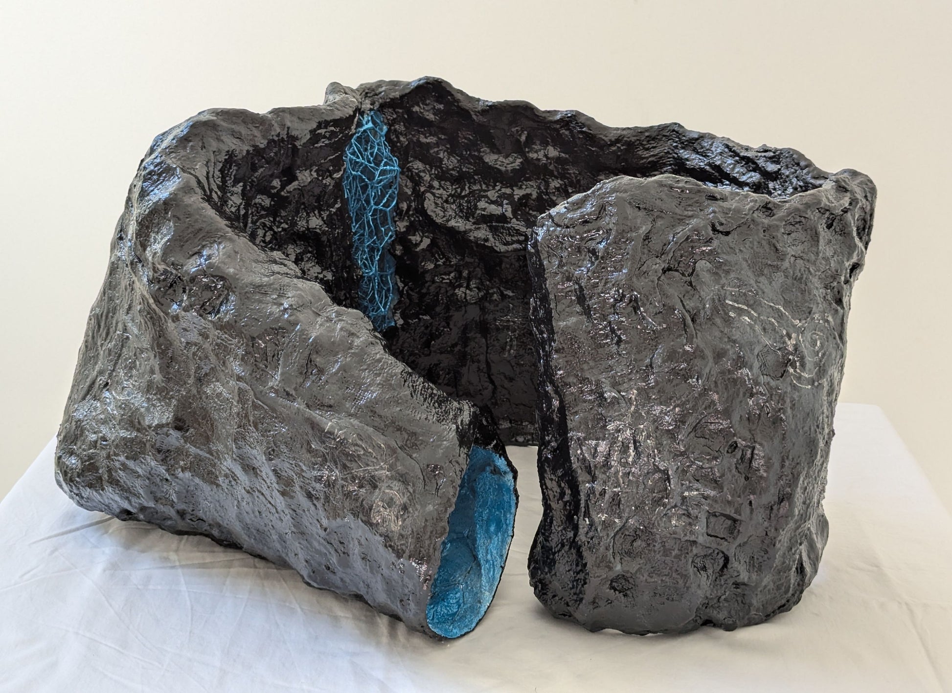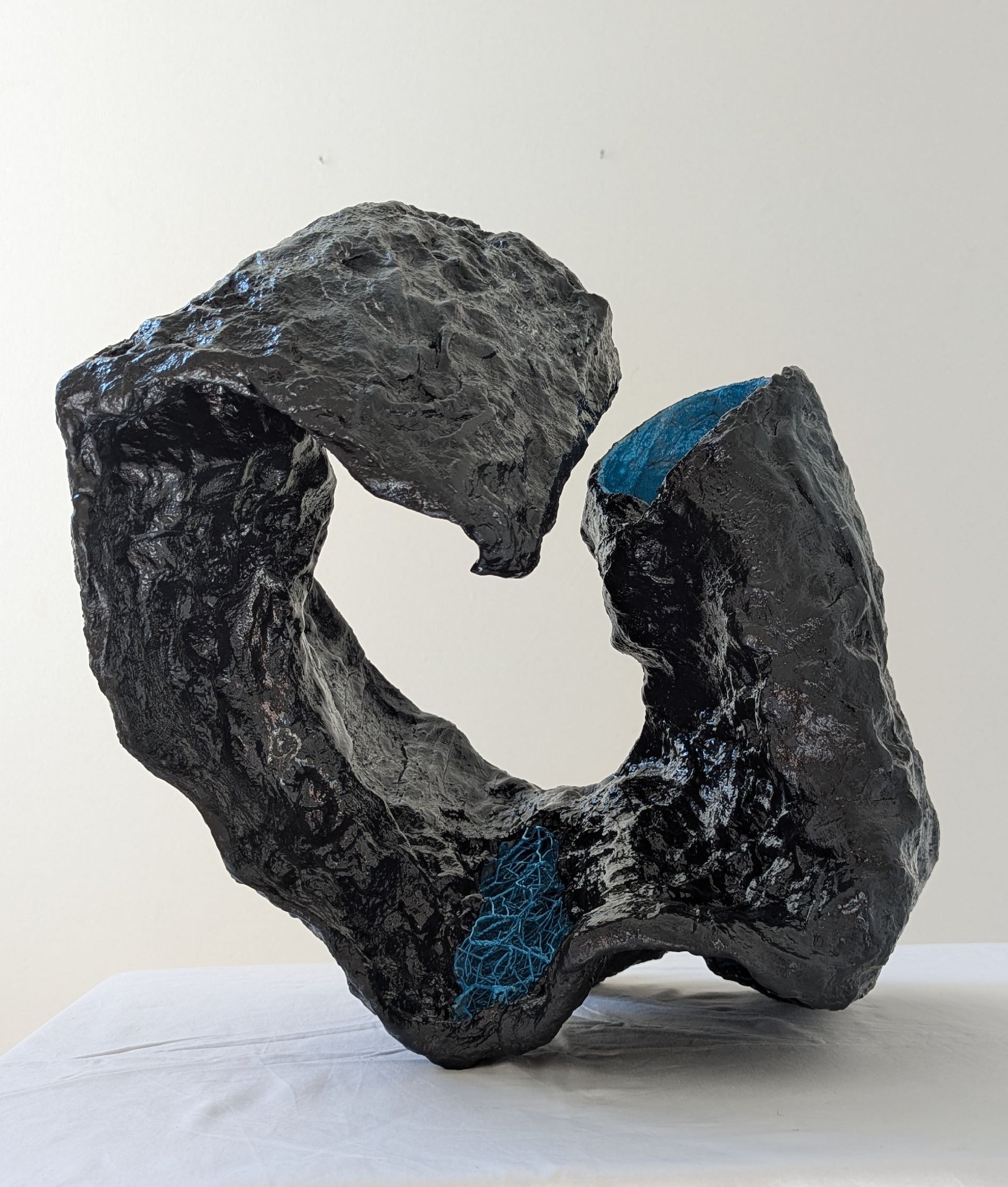 Like a body burnished and weathered by time and experience, this piece conceals and reveals. Reflecting the shifting facets of identity - how we position ourselves in response to vulnerability, strength, and circumstance, this sculptural form is designed to be viewed in multiple orientations.