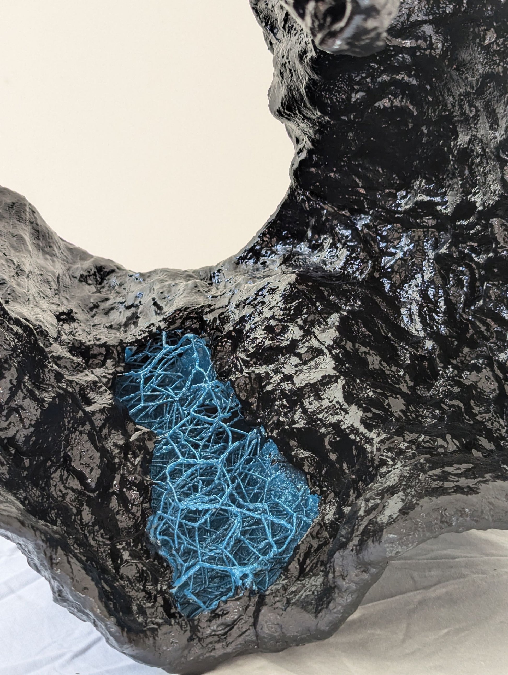 mixed media sculpture (plaster bandage, acrylic paint, glitter and re-used materials - galvanised wire mesh and copper wire) 2024